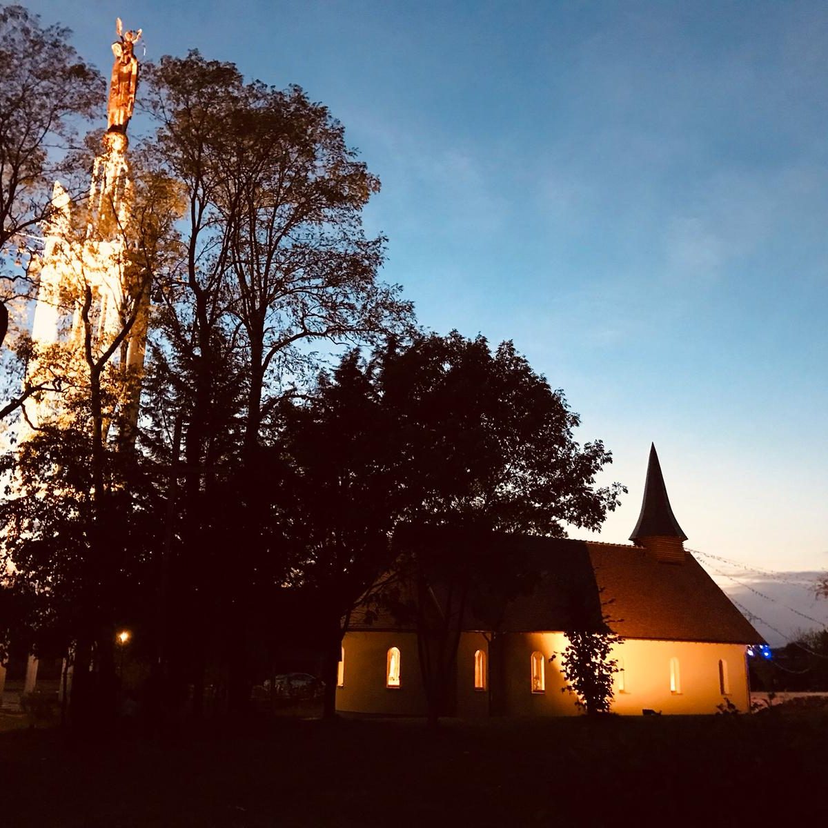 Cette chapelle, inspirée des chapelles et églises de nos campagnes est représentative en fait de toutes les chapelles qui fleurissent dans nos terroirs à la gloire de Marie. Plus proche de l’architecture du nord de la France avec son clocheton, ses absides, son préau, ses fenêtres en ogive, elle peut accueillir 140 personnes.